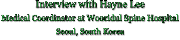 Hayne Lee: I think the patients should know that Wooridul Hospital is globally recognized for its specialized spinal treatments that give patients hope and a better quality of life. We offer fast and effective treatment with high caliber medical techniques and the best care.